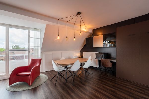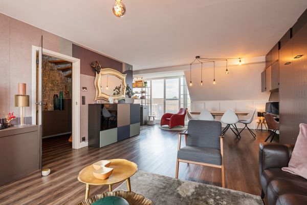 Dit duplex-appartement is gelegen in het hartje van Lier en omvat: Inkomhal, gastentoilet, leefruimte, open keuken, zeer ruime slaapkamer, badkamer, berging, zolderruimte, 2 terrassen het Noord-Oost terras heeft een oppervlakte van 50m², ondergrondse berging en ondergrondse garagebox dewelke mee dient aangekocht te worden t.b.v. € 20.000 (wordt overigens volledig vernieuwd). Het gebouw is voorzien van een lift. Laat de kans om dit zeer hoogwaardig afgewerkt appartement te komen bekijken niet aan u voorbijgaan.