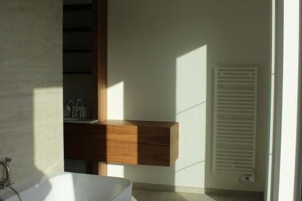 Dubbele wastafel, inloopdouche, ligbad, aanpalend ruime dressing en oost gericht terras
