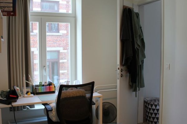 Deze studentenkamer is gelegen op 50 meter van de Markt te Leuven, heeft een oppervlakte van ongeveer 18m² en is bemeubeld met: bureau met bureaustoel, kleerkast, koelkast, microgolfoven, bed met lattoflex en een eigen badkamer met lavabo, douche en toilet. Het gebouw is voorzien van een gemeenschappelijk keuken met berging. De foto's zijn indicatief.