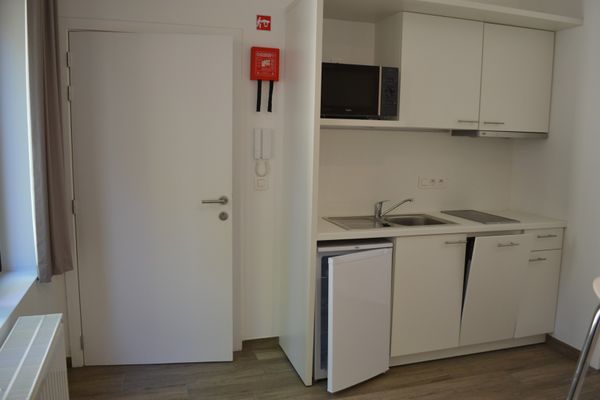 Deze bemeubelde studio, gelegen in het centrum van Leuven, bevat een leefruimte met kitchenette, slaapgedeelte, badkamer...